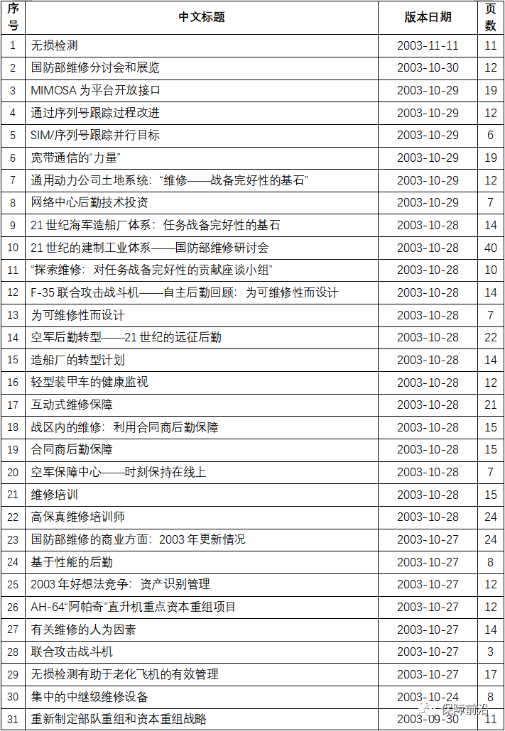 2003年美国国防部维修年会系列资料