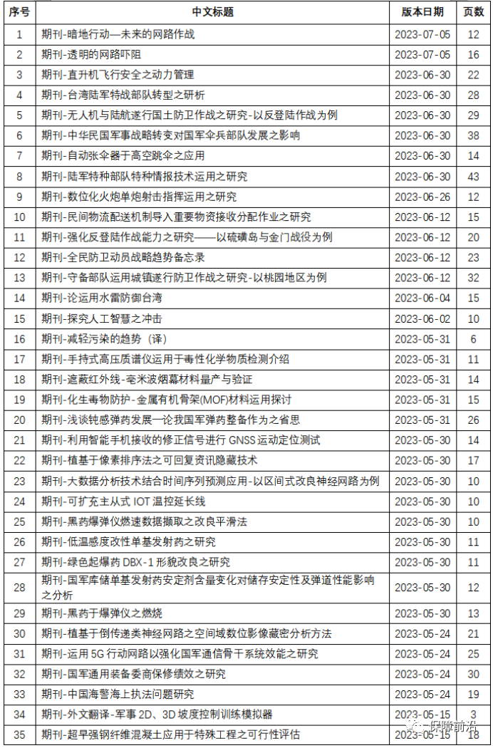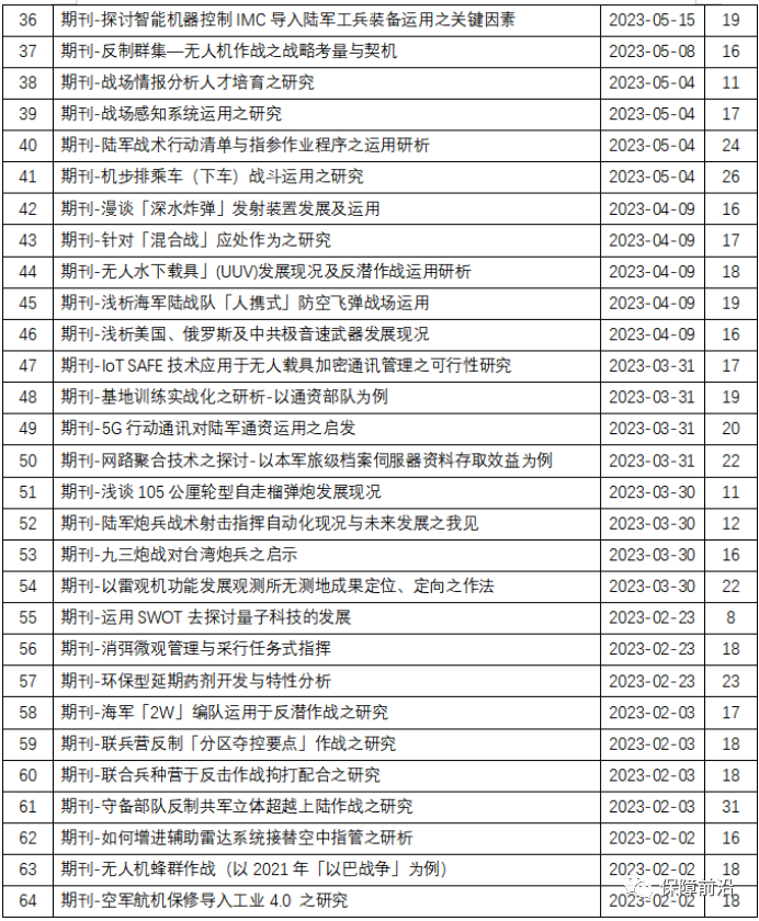 2023年T军对我军作战及技术研究相关期刊资料
