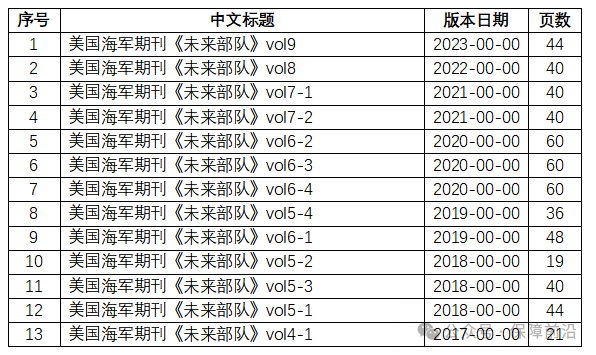 . 《未来部队》是美国海军科技界的专业杂志,每季度由美国海军研究办公室出版。它旨在向读者介绍美国海军资助的科技研究和先进技术开发工作。该杂志的使命是增进人们对科学家和工程师为海军、海军陆战队和国家发现、开发和展示的决定性海军能力的认识。