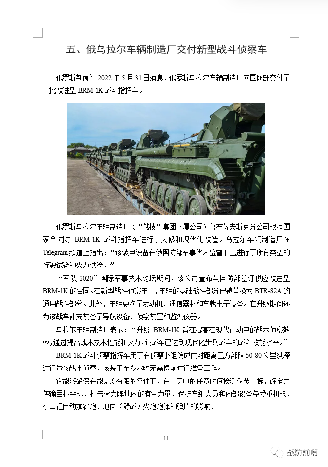 五、俄乌拉尔车辆制造厂交付新型战斗侦察车