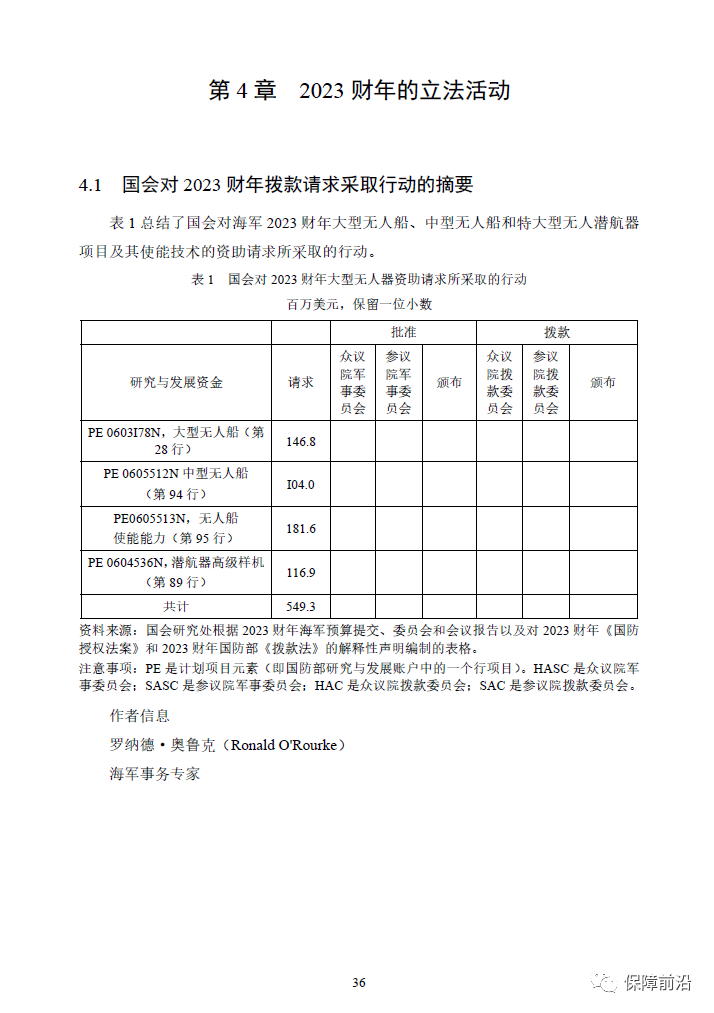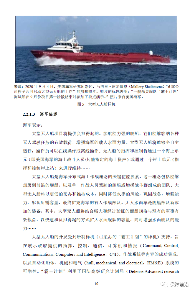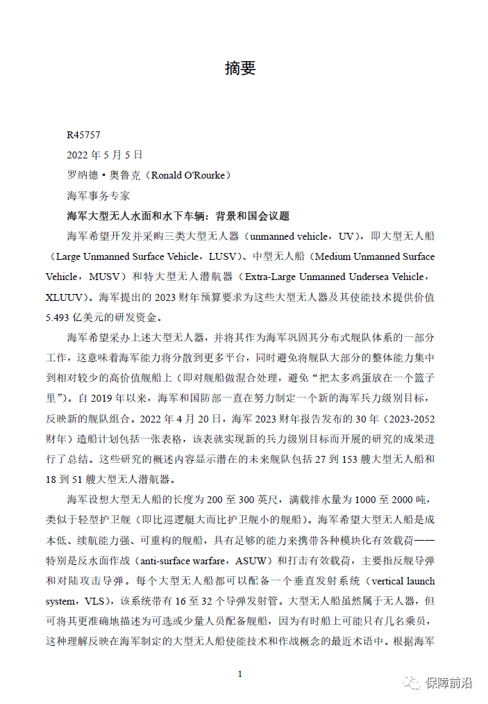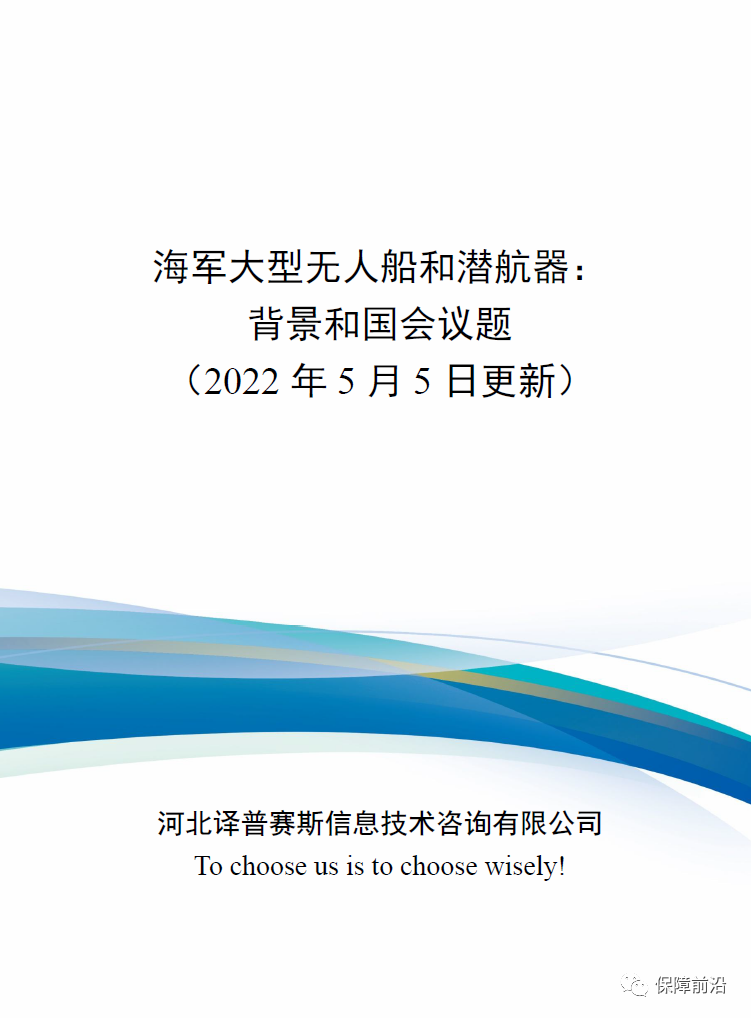 . 2022年5月5日,美国国会研究服务处(CRS)更新了《海军大型无人船和潜航器:背景和国会议题》,本报告根据海军无人船和无人潜航器的最新发展情况,提出了2023年的预算和投资采购计划。整体分为两部分,一是海军的采购计划,二是国会面临的问题。