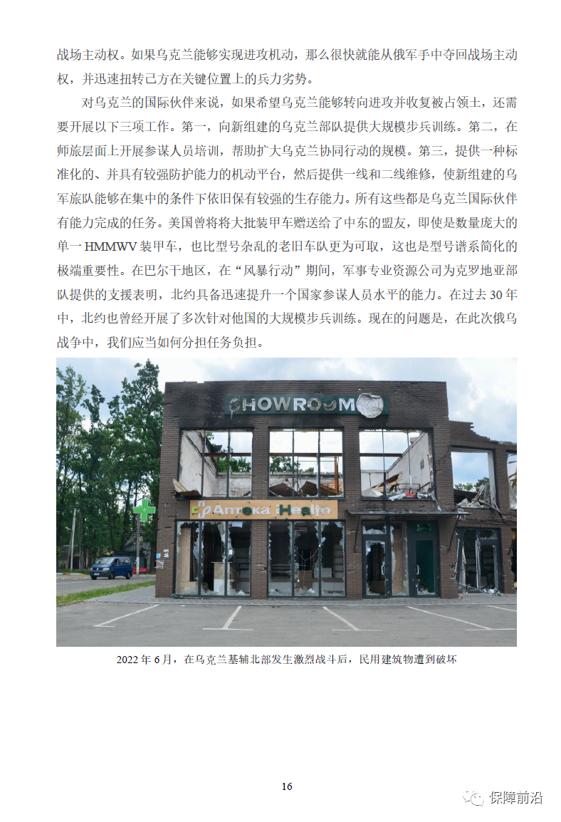 . 乌克兰还必须接受大规模训练,组建具备开展进攻行动的新型部队,并开展参谋人员和初级军官培训,使其具备组织并实施多兵种合成进攻行动的能力。