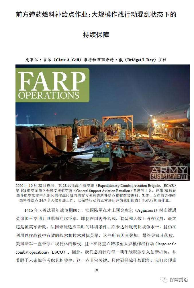 前方弹药燃料补给点作业:大规模作战行动混乱状态下的持续保障