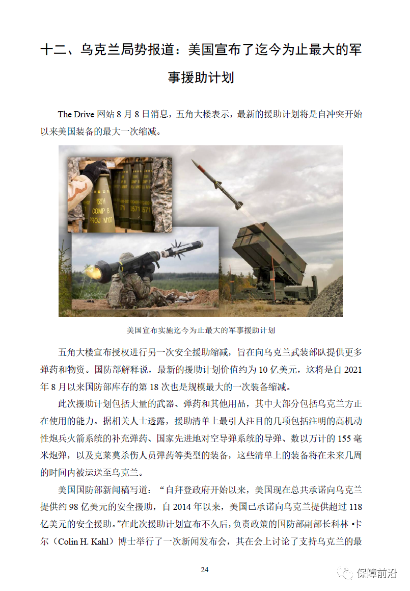十二、乌克兰局势报道:美国宣布了迄今为止最大的军事援助计划