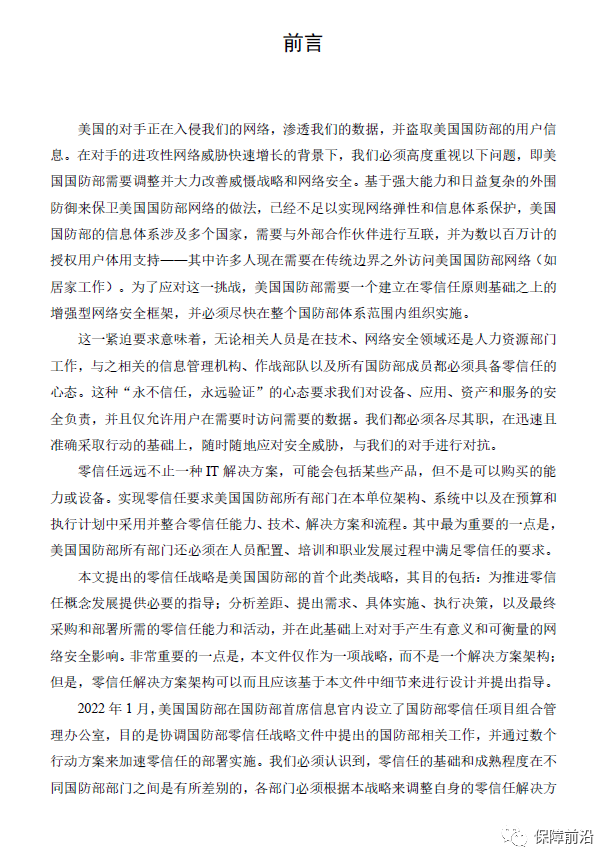 2.1 美国国防部零信任战略的愿景