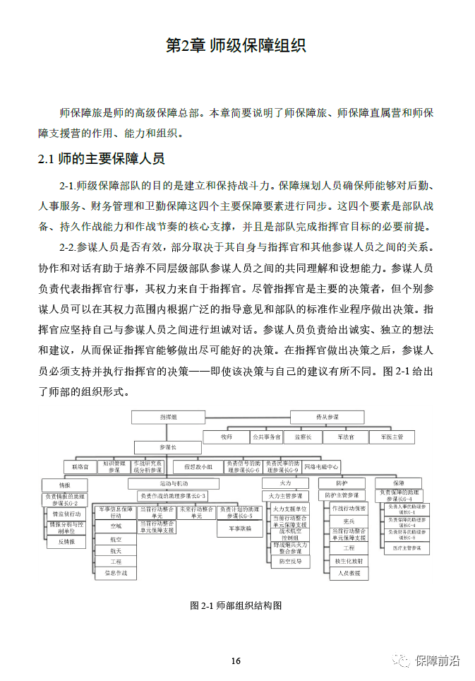 2.9 保障参谋组织