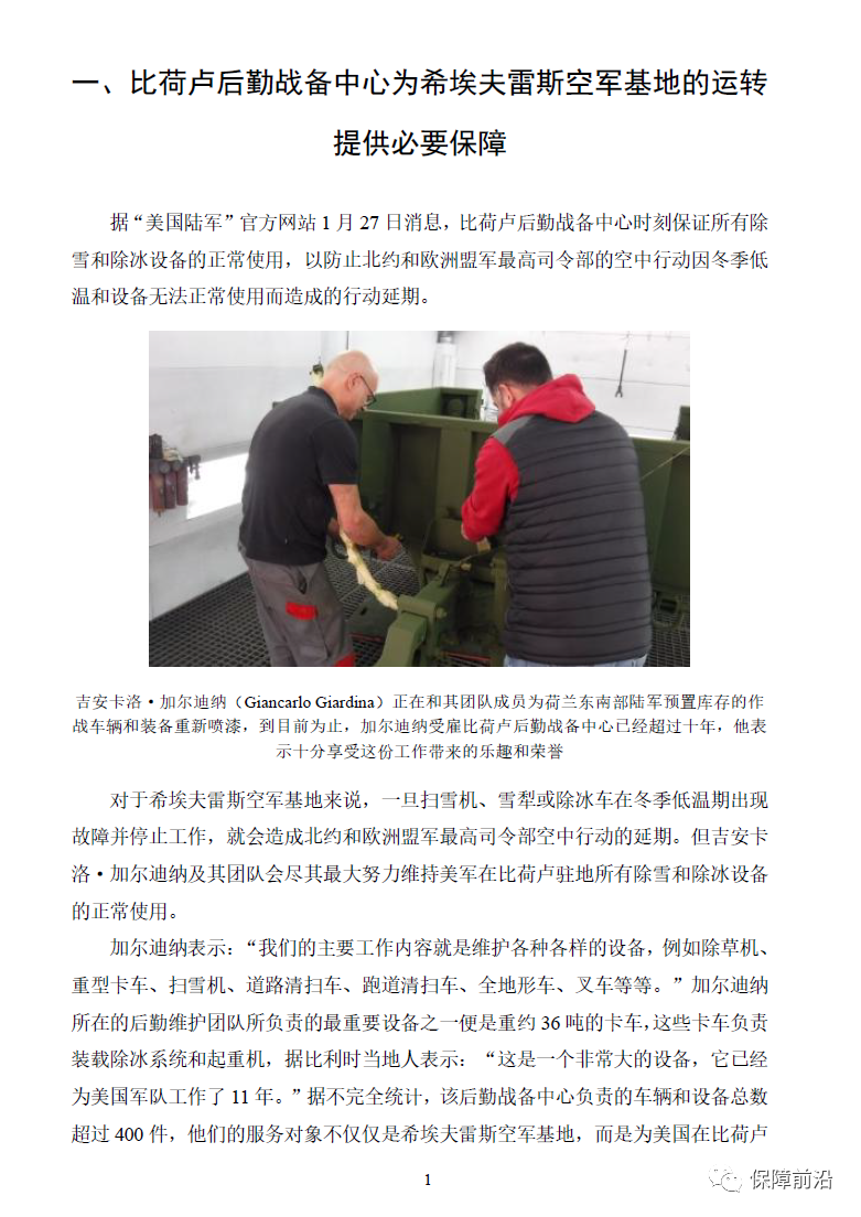 一、比荷卢后勤战备中心为希埃夫雷斯空军基地的运转提供必要保障