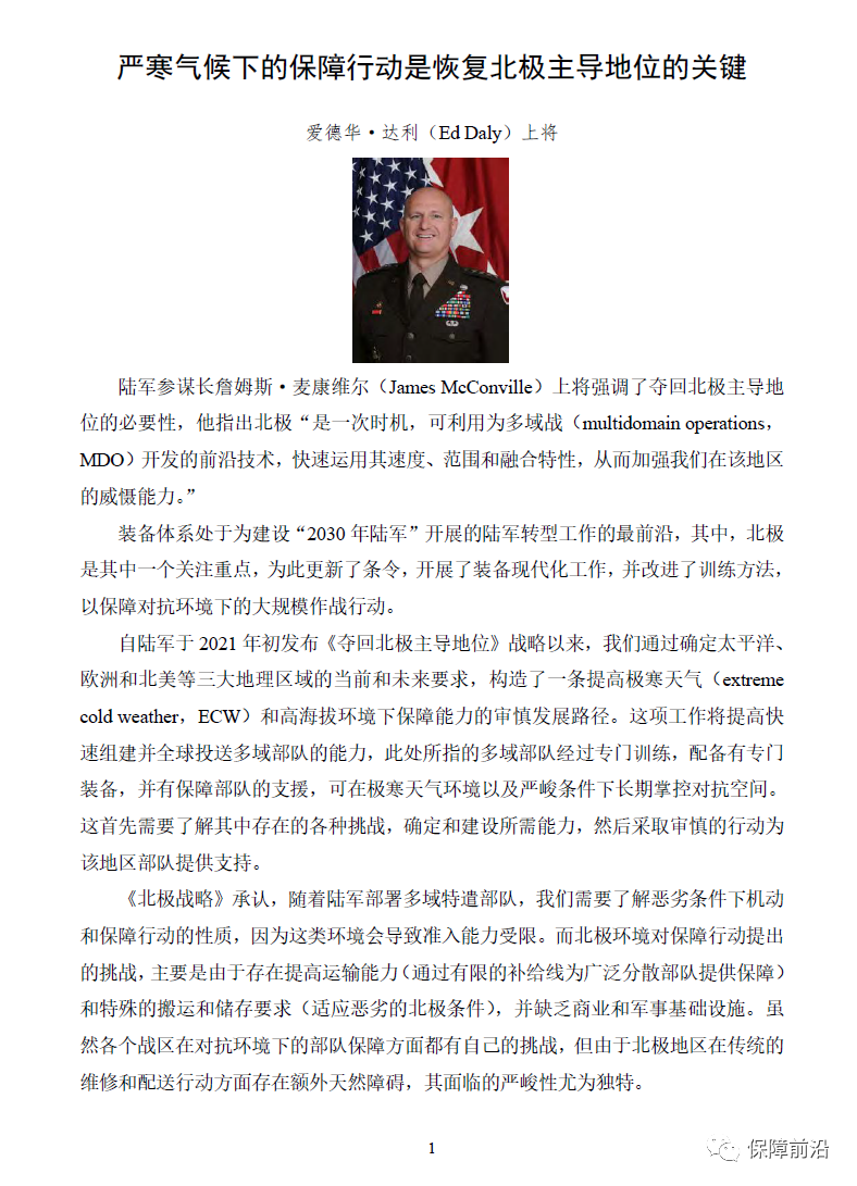 严寒气候下的保障行动是恢复北极主导地位的关键