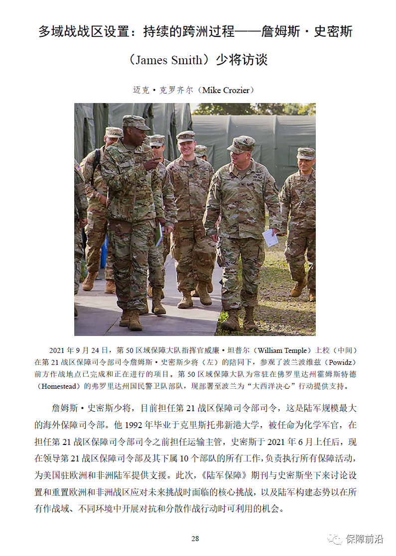 多域战战区设置:持续的跨洲过程——詹姆斯·史密斯(James Smith)少将访谈