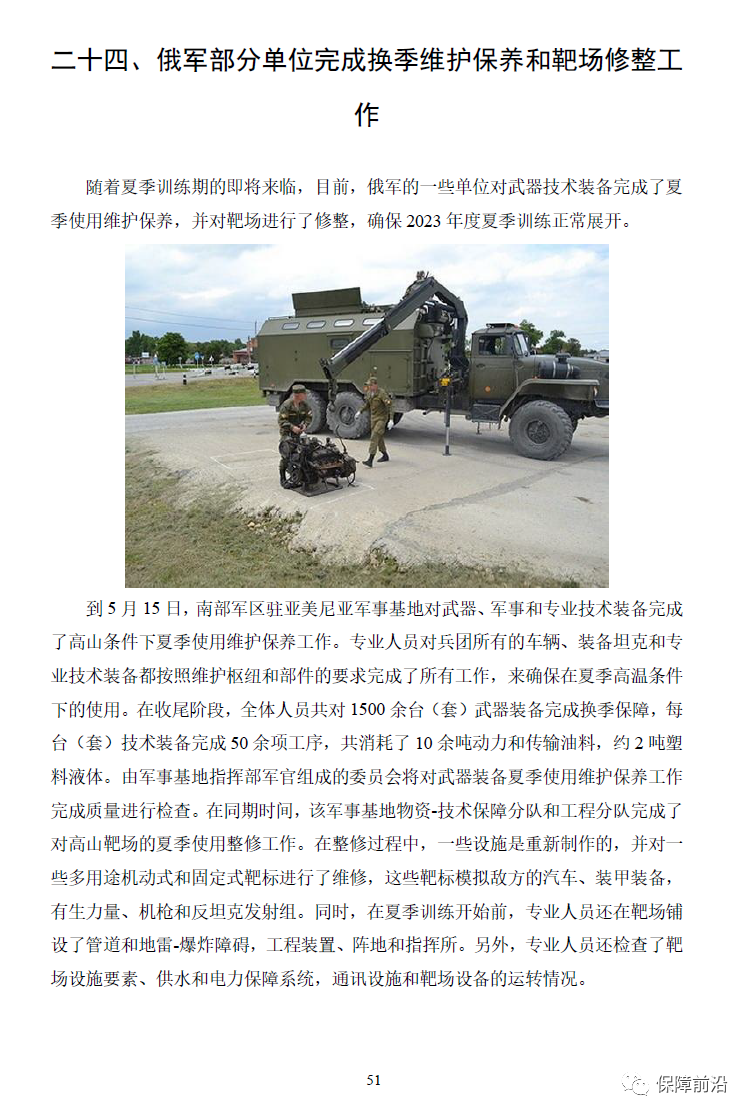 二十四、俄军部分单位完成换季维护保养和靶场修整工作
