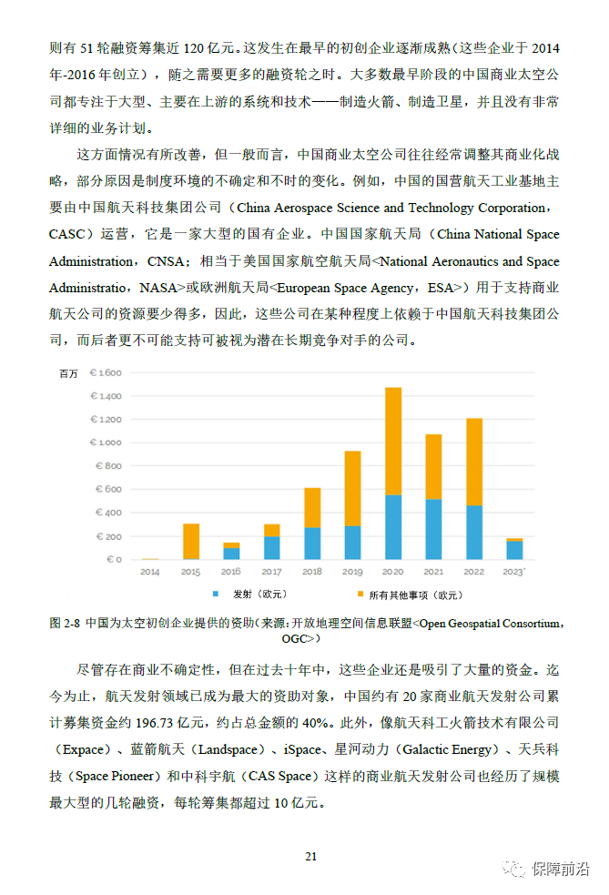. 本报告是欧洲空间政策研究所提供的关于私营部门参与航天领域投资的年度报告,重点关注欧洲、全球和中国市场的投资数据。随着欧洲继续发展和重振其太空工业基础,了解全球动态并利用其他地区的专业知识,对保持竞争力至关重要。政策制定者必须专注于推动创新、促进融资、创造投资机会的激励措施,并增加公共支持以刺激私营部门对太空的投资。本报告重点分析了2022年度欧洲太空初创企业投资信息,其次分析了全球范围内尤其是中国的太空投资情况,最后总结了欧洲、全球和中国太空风险投资情况。