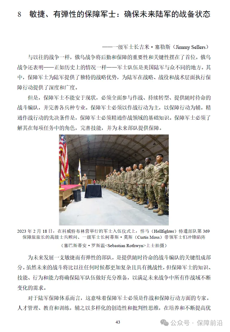 8 敏捷、有弹性的保障军士:确保未来陆军的战备状态
