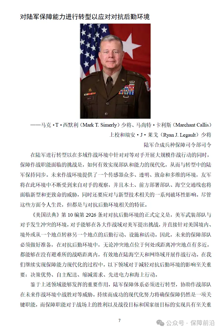. 本文主要探讨了大规模作战行动中对抗条件下的保障行动,具体分16个部分。本文重点探讨了印太地区对抗条件下的后勤行动以及相关的演习活动,其目的是确保美国陆军在对抗环境中取得胜利,对陆军保障能力进行转型以应对对抗后勤环境。