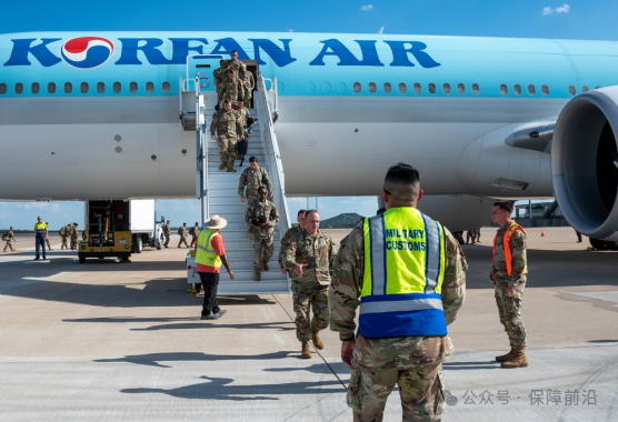 2024年9月18日,美军士兵在德克萨斯州卡瓦佐斯堡从大韩航空飞机上下机,执行延长的《互助空运支持协议》。