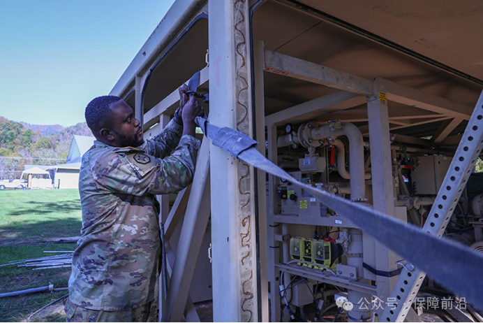 图3 2024年10月6日,第169师持续保障支援营A连的水处理专家乔丹·霍克正在山城保护战术水净化系统