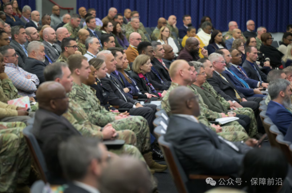2025年1月23日,国防后勤局员工在弗吉尼亚州贝尔沃堡聆听退役空军上将、前参谋长联席会议副主席保罗·塞尔瓦(Paul Selva)谈论美军现阶段面临的主要挑战