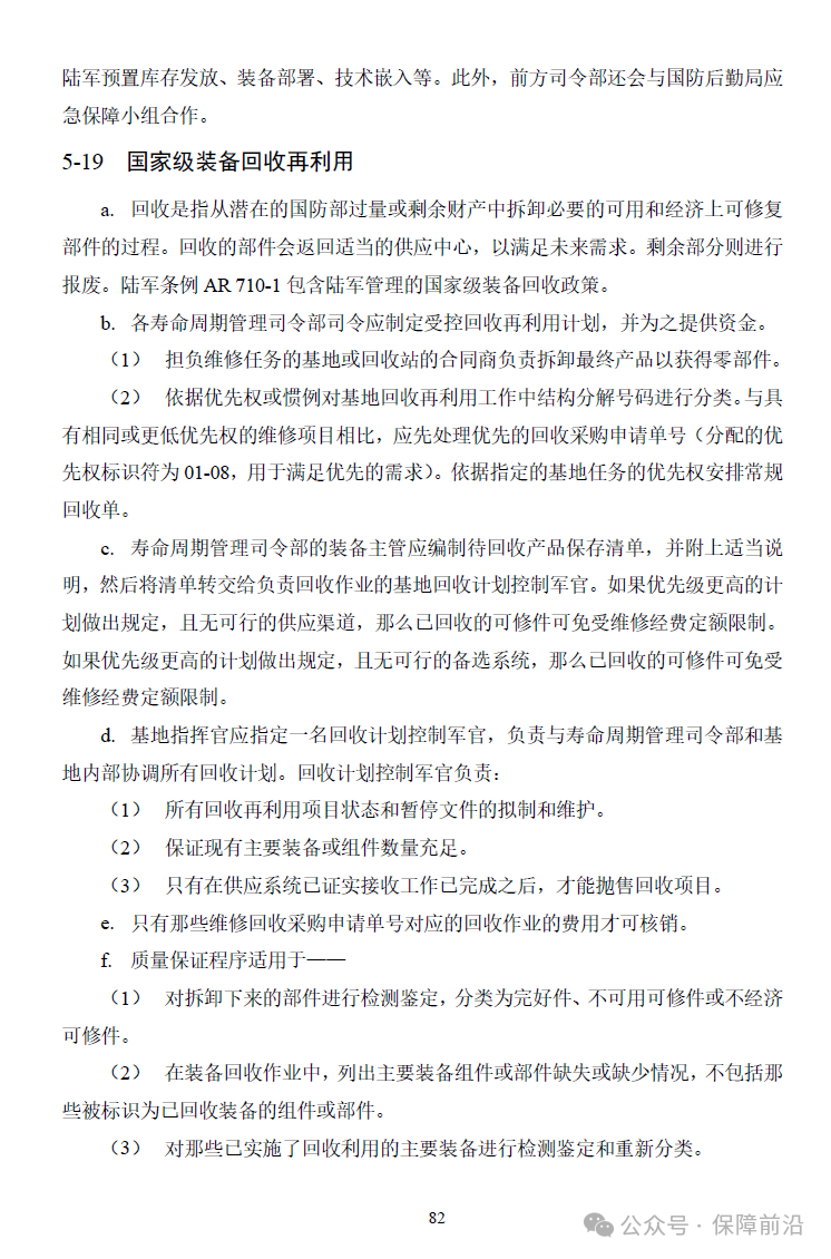 第十节 寿命周期维修保障(陆军部总部直属陆军装备研制部门、陆军装备司令部)