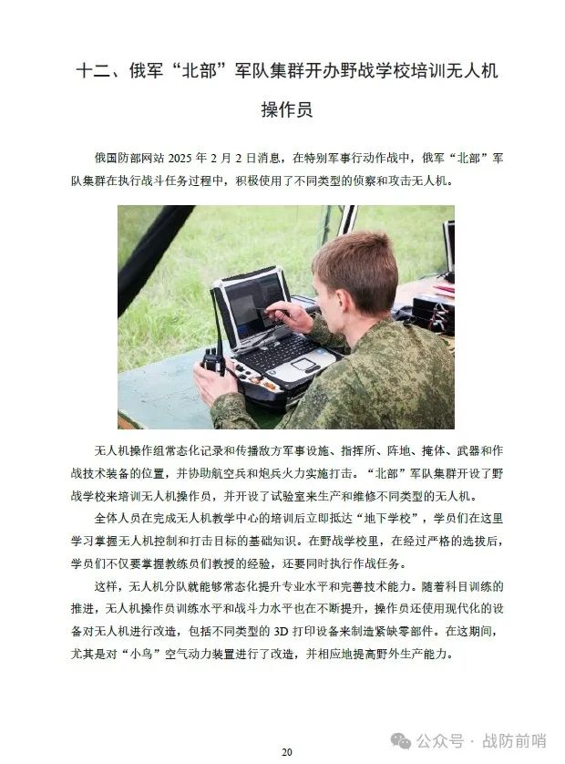 十二、俄军“北部”军队集群开办野战学校培训无人机操作员