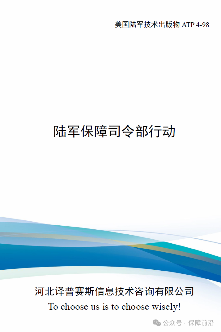 . 陆军技术出版物ATP 4-98分为五个章节和2个附录,简要说明了陆军保障司令部的组织结构和任务,并介绍了陆军野战保障旅、陆军野战保障营和后勤战备中心如何提供陆军装备司令部非常广泛的战略层面保障能力,从而建立和保持部队战斗力。