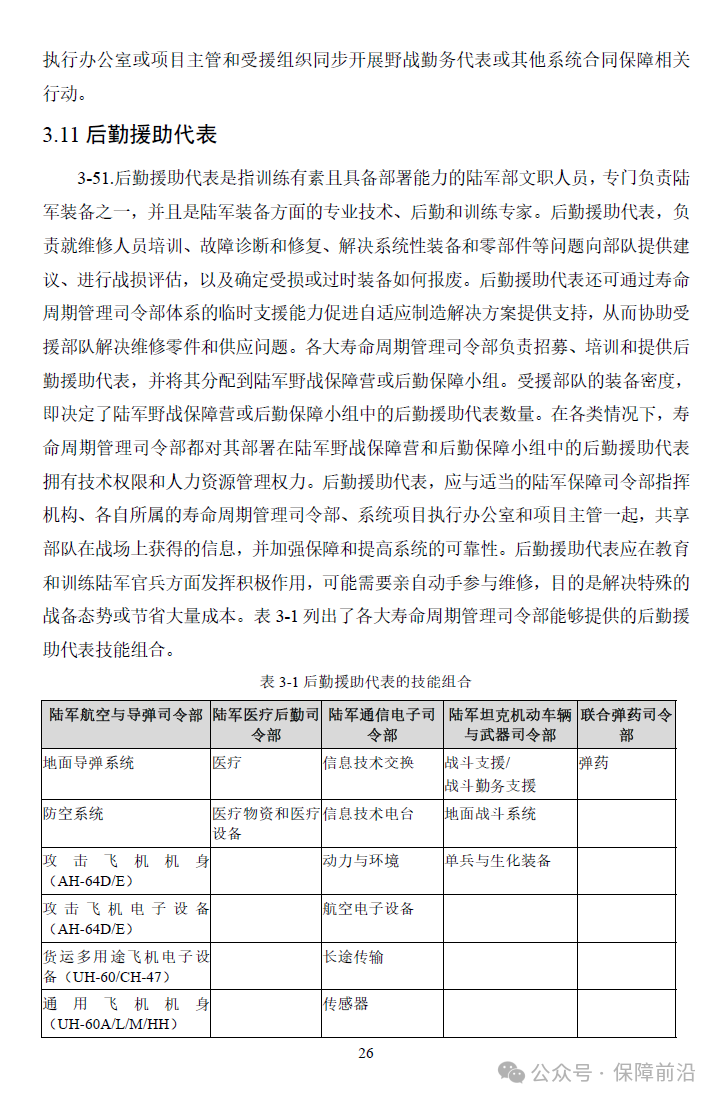 3.11.3 陆军坦克机动车辆与武器司令部后勤援助代表