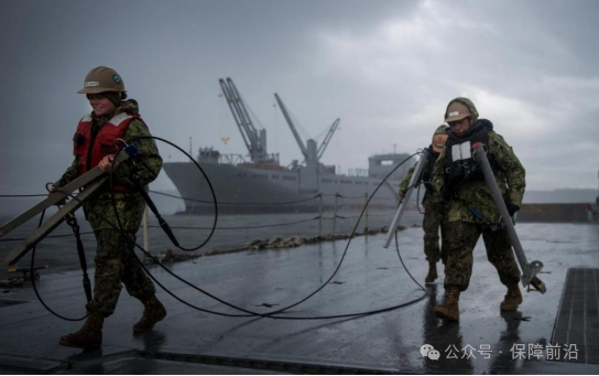 . JLOTS行动的开展有着一套特定的流程。通常情况下,首先会有一艘大型海军舰艇在近海锚泊,并在其旁设置一个滚装滚卸设施(大型浮动码头)。在这个过程中,卡车、集装箱或设备等被吊装或滚装到浮动码头上,再装载到船或艇上运往岸边,通过堤道将货物运送到陆地。堤道有多种类型,如三叉戟堤道,由多个模块化堤道段组成,可根据任务需求和海岸线地理条件拼接至最长1800英尺。每个模块化堤道段又有着特定的结构,是由六个20×8英尺的浮筒和三个40×8英尺的箱型端浮筒构成。这些浮筒配备了“整体连接系统”,这一设计使得每个堤道段都具备模块化的特性,便于在不同的情况下进行灵活组合和使用。在实际操作中,堤道需要在海上进行组装,之后由拖船护送并推至海滩,最后由陆军和海军人员将堤道的远端固定在海床上。