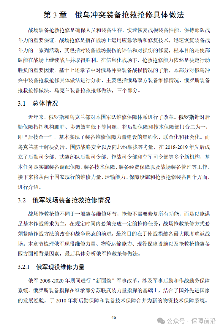 第4章:保障问题,从双方作战表现和战损情况中,分析俄军和乌军分别存在的后勤保障和维修保障问题。