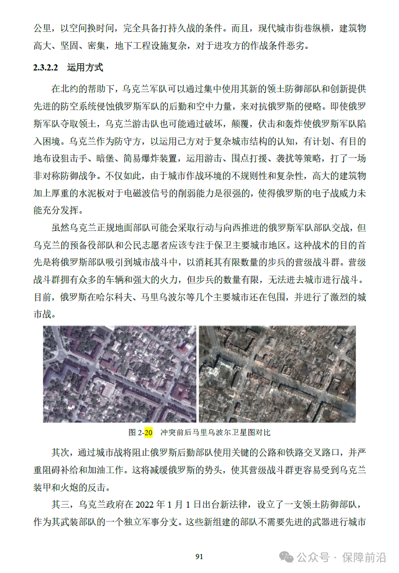 . 本报告共有三章内容,第一章是概述俄乌冲突中主要的战法;第二章分析冲突中俄乌双方的战法运用,以及作战效果的分析;第三章是针对俄乌冲突战法运用,提出相关的启示或建议。