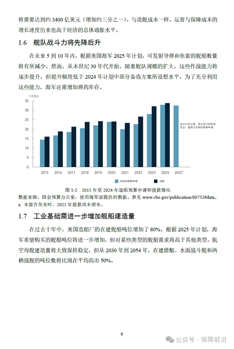 1.5 海军2025年计划要求增加总预算以运营和维护更大规模的舰队