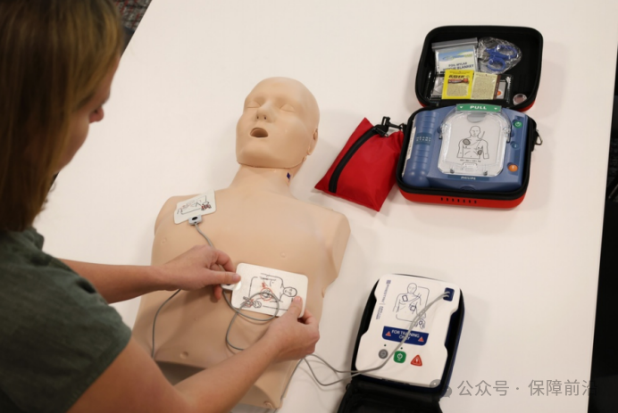 . 二是规范AED设备管理机制与技术创新应用。该中心通过严格的设备维护与技术创新保障AED可用性。300号楼共配置了9台AED,分布在各楼层,由安全团队每月定期检查电池、电极片及设备运行状态,确保随时处于可用状态。同时,引入的飞利浦HeartStart型号AED,具备语音和图文双重指引功能,可简化操作流程,降低非专业人员使用门槛。这种“用户友好设计+动态反馈”模式,使即便无经验者也能在紧急关头快速实施救助,凸显了技术在提升急救效率方面的作用。
