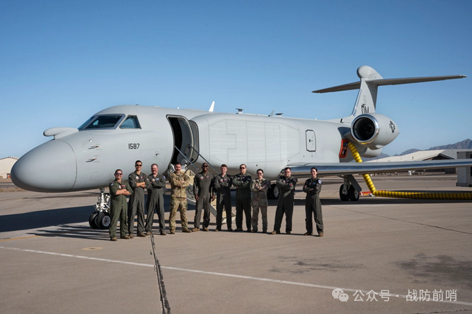 . EA-37B“罗盘呼叫”(Compass Call,原EC-37B)是一种基于湾流(Gulfstream)G550的广域机载电子攻击武器系统,采用湾流G550机身的重大改进型号,旨在替代传统的EC-130H,实现更现代化且更具成本效益的商用衍生飞机。目前,14架EC-130H中已有10架退役。EA-37B凭借其现代化的电磁攻击能力,能够有效干扰和阻止同类竞争对手的战术网络及信息生态系统。该能力使联合部队能够在电磁战场上保持军事优势,进而打造出一支更具战斗力和杀伤力的部队。