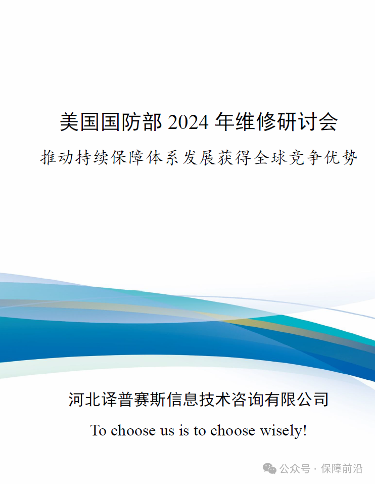 . 除了本《美国国防部2024年维修研讨会》大会介绍手册外,我们还将提供全体会议、分组专题会议、相关会议以及“美国国防部2024年武器系统软件峰会”的PPT以及《美国国防部2024年维修创新挑战赛》手册译本,详情咨询赛斯智库工作人员。