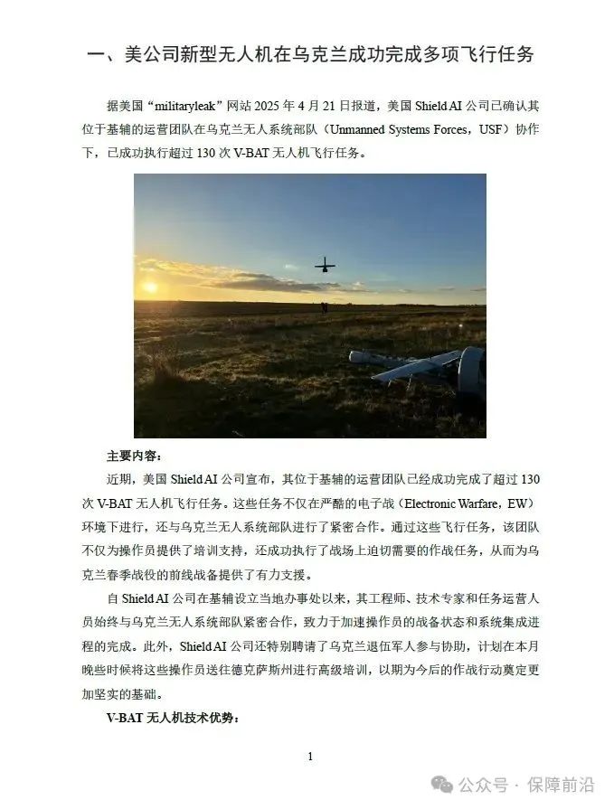 一、美公司新型无人机在乌克兰成功完成多项飞行任务
