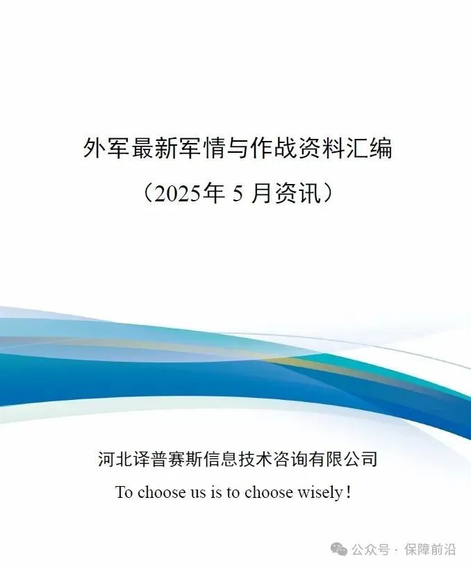 . 《外军最新军情与作战资料汇编(2025年5月资讯)》对5月内全球发生的重大军事动态进行汇总,共三十一篇,内容涉及主要军事强国的军情动态、演训追踪、兵器发展以及战略观察。通过这份汇编,可以了解最新的武器装备发展趋势、掌握军事强国的演训情况、解读各国的军情玄机、洞察正在发生复杂变化的国际军事安全形势。