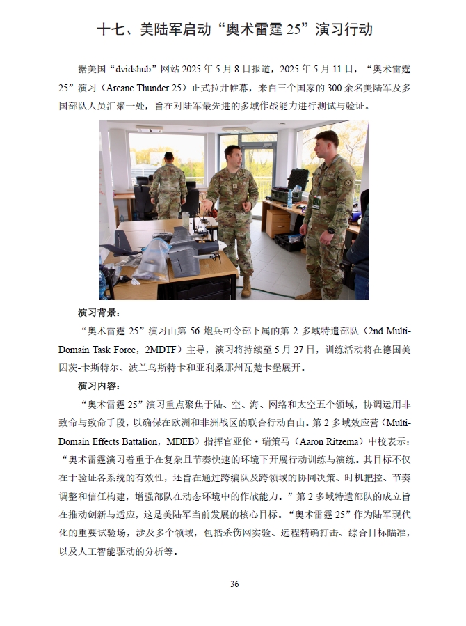 十七、美陆军启动“奥术雷霆25”演习行动