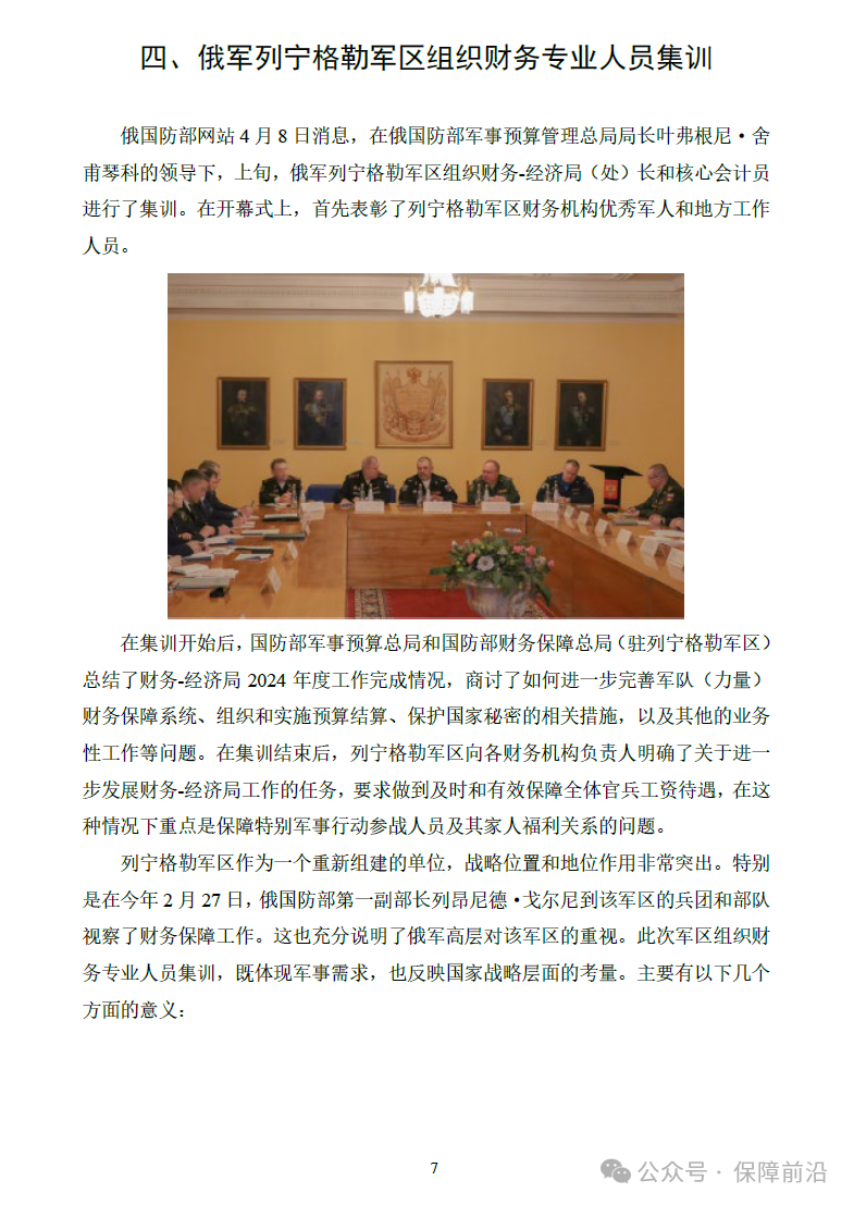 四、俄军列宁格勒军区组织财务专业人员集训