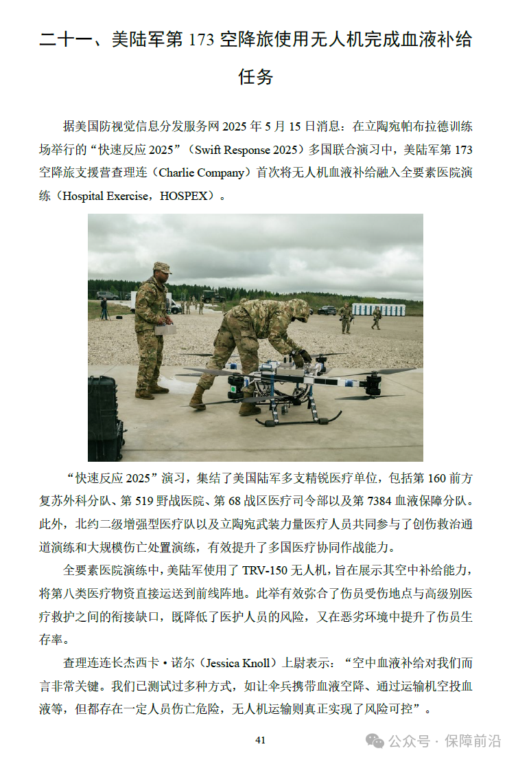 二十一、美陆军第173空降旅使用无人机完成血液补给任务