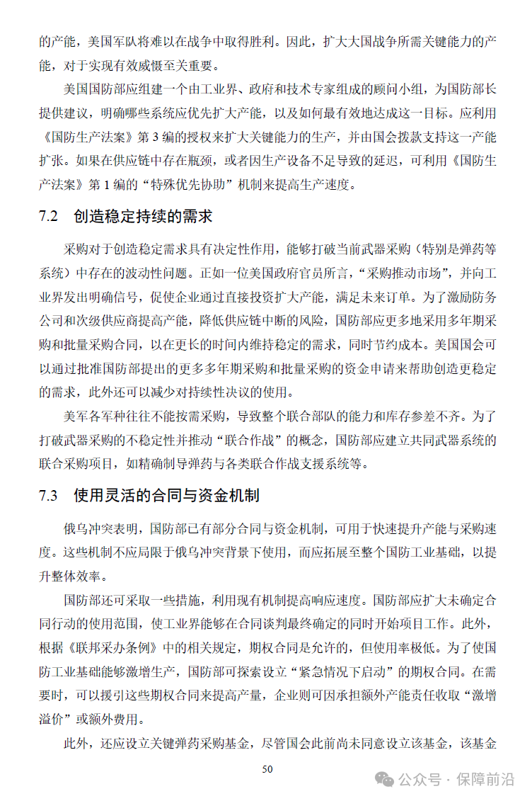. 报告提出,美国必须围绕四大核心能力——产能、响应速度、灵活性和韧性,对国防工业体系进行系统性改革。建议包括:扩大关键武器系统产能、稳定采购需求、使用更灵活的合同机制、建立战略储备、推动新型制造模式,以及深化与盟友的工业合作。报告还通过弹药生产和造船两个案例,展示了工业改革的可行路径。最终,作者警示:如不采取有效行动,美国不仅难以保障盟友安全,更可能在未来大国战争中处于战略劣势。