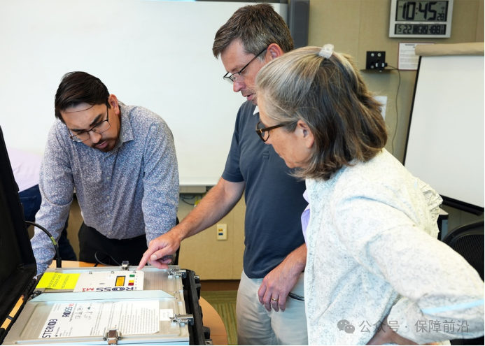 2025年5月22日,SteriO3首席执行官史蒂夫·休斯(Steve Hughes)(中)向海军医学研究小队圣安东尼奥分队首席研究员安德烈斯·马丁内斯·穆里洛(Andres·Martinez·Murillo)和战场健康与创伤研究所科学家Tarea·Burton交付第三代坚固型臭氧灭菌系统ROSS M1