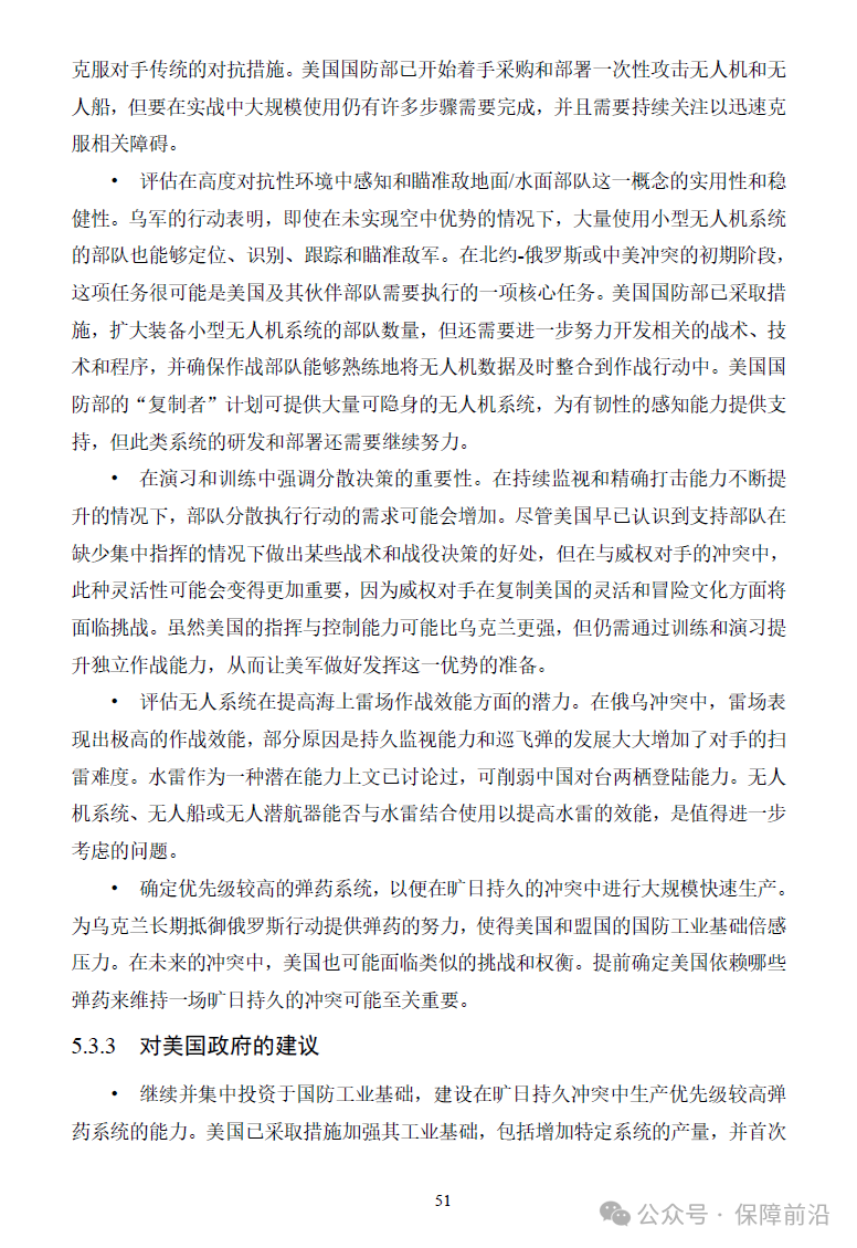 . 随后,作者基于八种观察结果预测了未来战争的特征,评估了这些观察结果是否以及如何适用于美国可能卷入的两种冲突场景——东欧地区和印太地区的冲突。