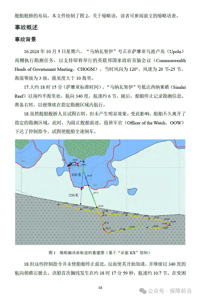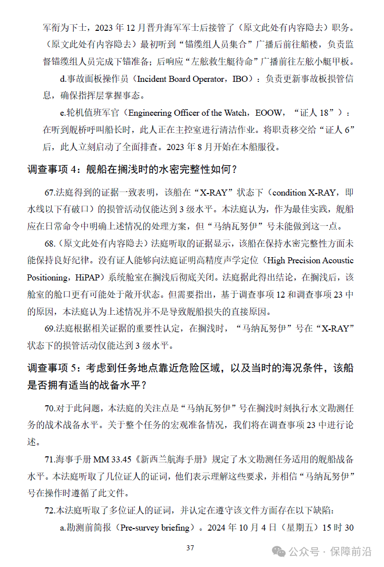 调查法庭报告:2024年10月5日至6日,新西兰皇家海军舰艇“马纳瓦努伊”号的搁浅与损失
