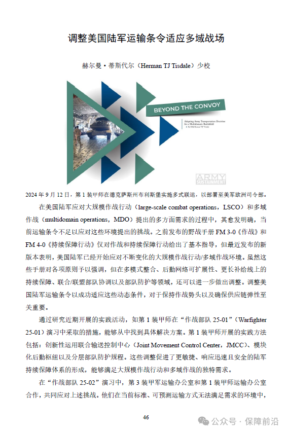 美国陆军部总部后勤副参谋长关于俄乌战争的几点思考和分析